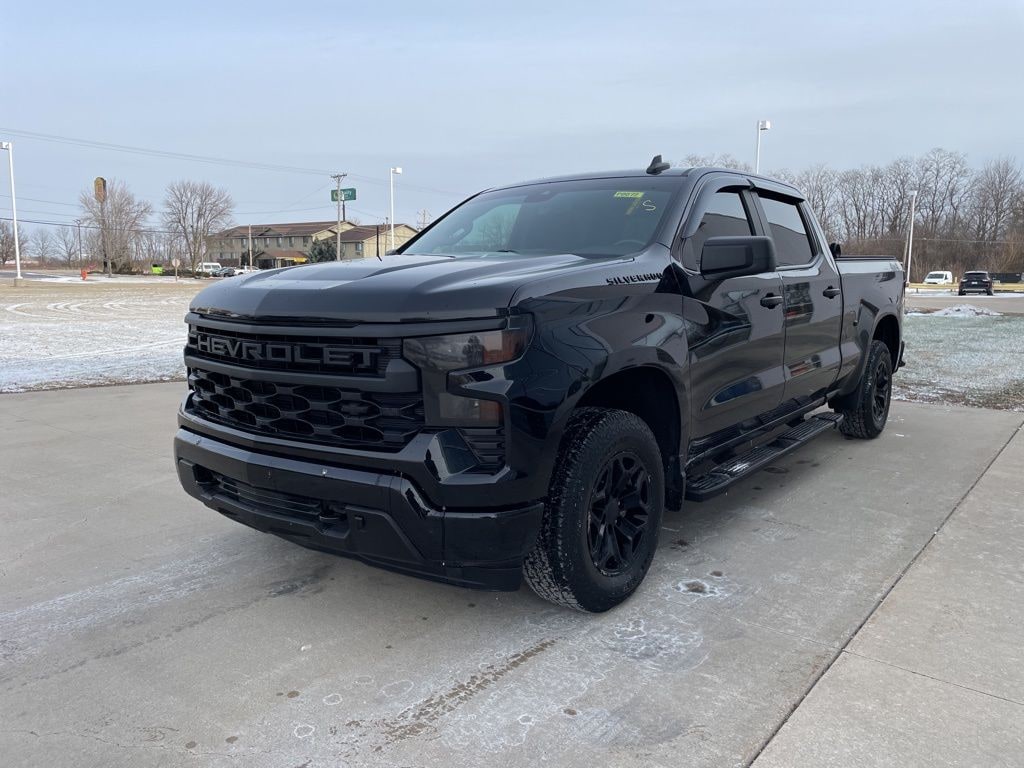 Black 2023 Chevrolet Silverado 1500 Custom 4D Crew Cab 2.7L Turbo 8-Speed Automatic 4WD Clean CARFAX.